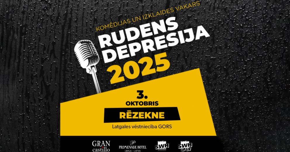 Jau tradicionālais Latvijas lielākais rudens izklaides un humora notikums “Rudens Depresija 2025” šogad atgriežas vēl grandiozāks, vērienīgāks un pārsteigumiem bagātāks nekā jebkad iepriekš. Šogad pirmo reizi pasākumi notiks četrās pilsētās – Liepājā, Valmierā, Jelgavā un Rēzeknē, kā arī šovam pievienojas jauni mākslinieki un visu laiku populārākais šī žanra duets Baiba Sipeniece-Gavare un Valters Krauze.